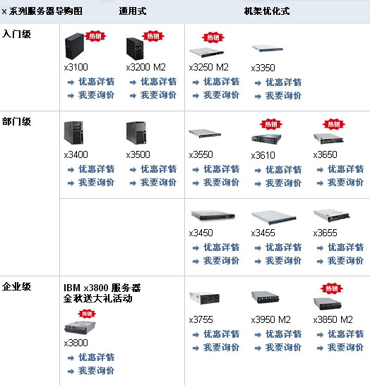 IBM x3500二塔式服务器IBM x3400塔式服务器IBM x3610机架式服务器IBM  x3650机架式服务器